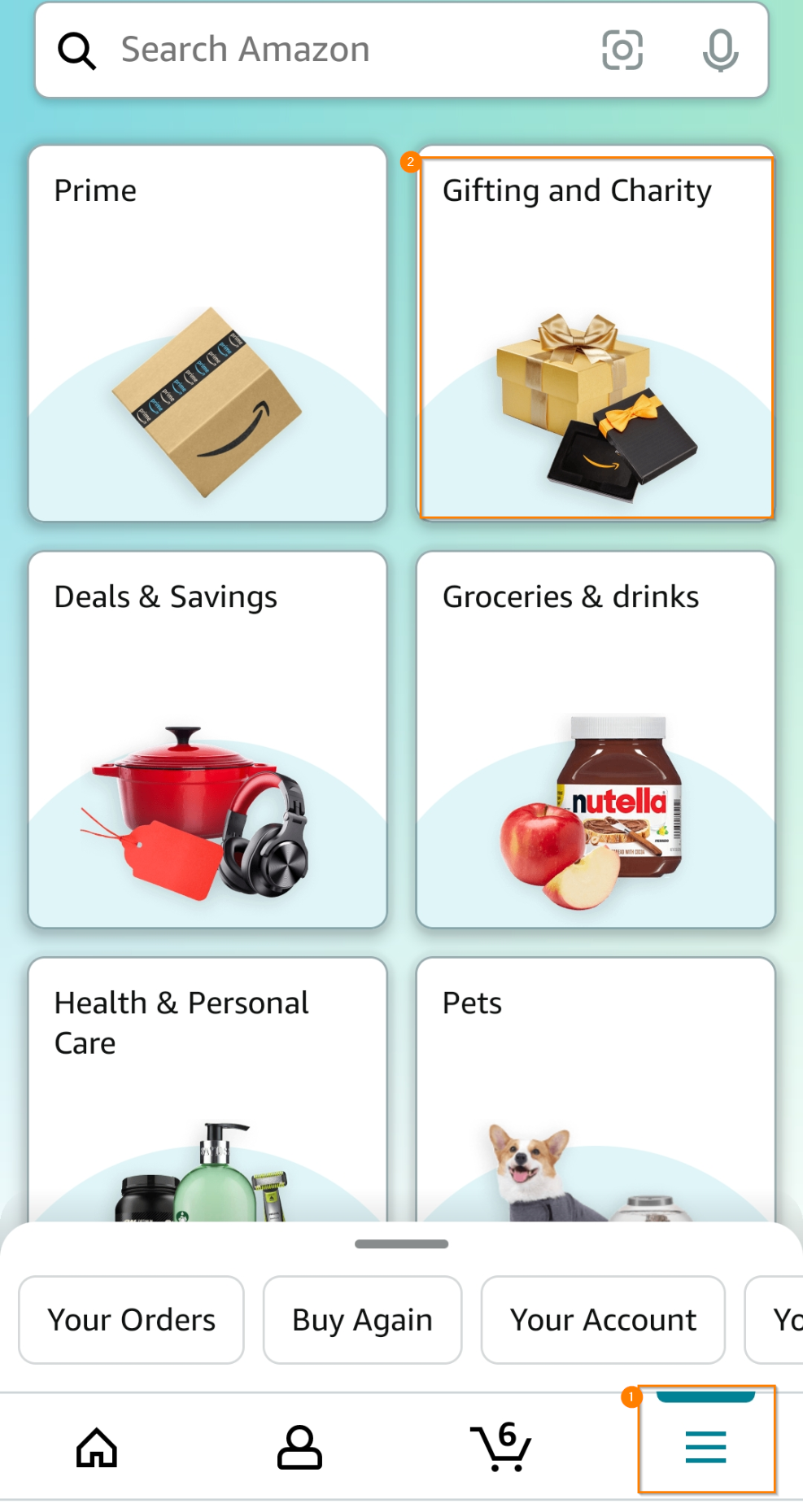 Activate AmazonSmile in your Amazon App on iPhone or Android
